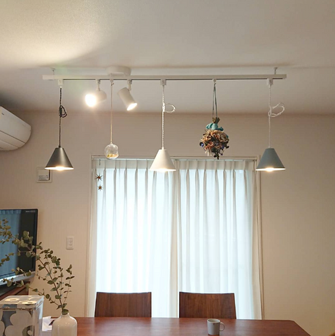 ライティングレールを用いると、部屋の雰囲気に合わせて照明の位置を変えたり、色々な種類の照明を組み合わせたりするのにとても便利です。