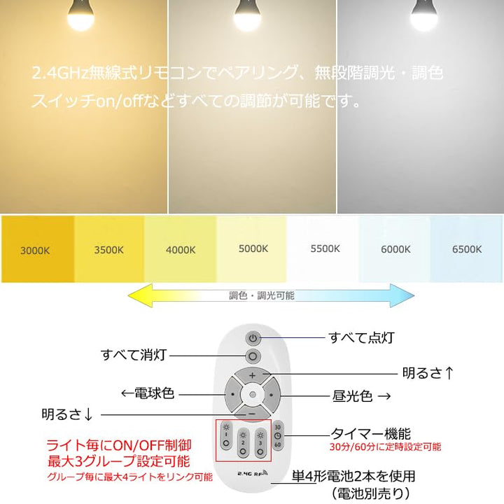• 【調光&調色LED内蔵式&便利なリモコン操作】発光色と明るさ調整は細かく設定可能で非常に便利。 離れたところからでもリモコンで簡単にON/OFF、調光・調色などの操作が可能です。