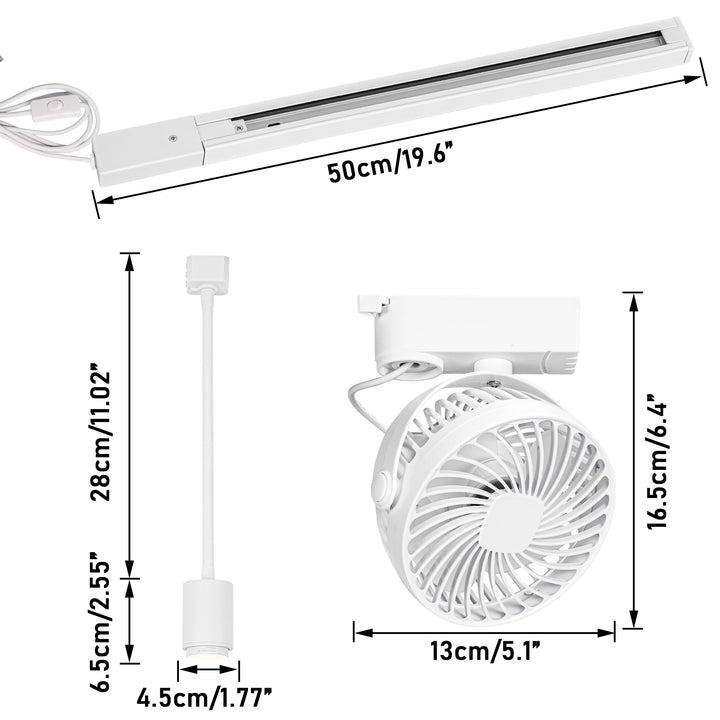 FSLiving ライティングレール用セット 扇風機 スポットライト 空気循環 洗面所 トイレ用 リビングルーム用 調光 調色 ZH25-1D-1FS-1GDT-W