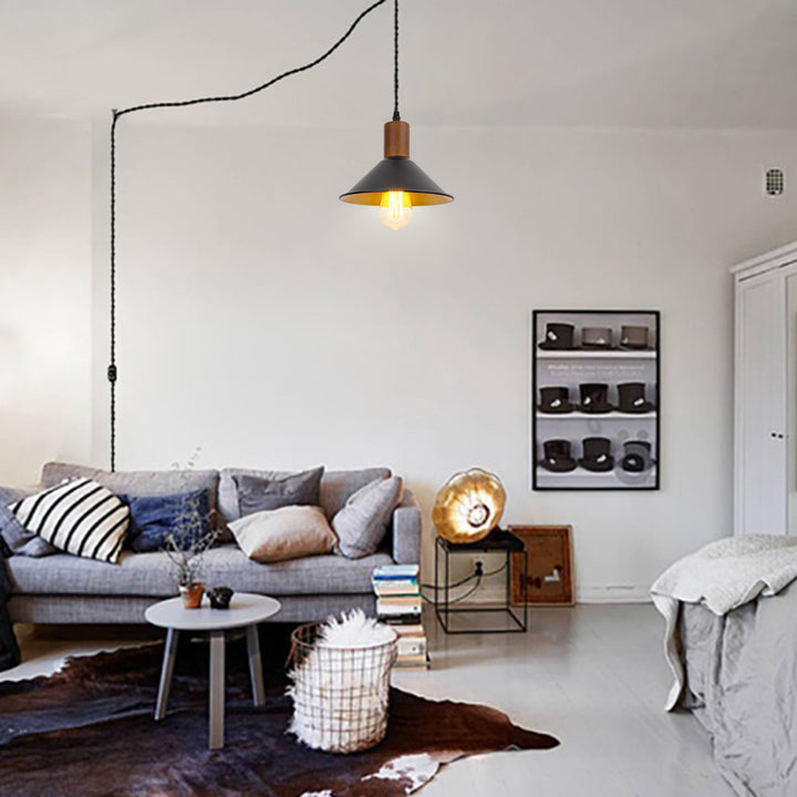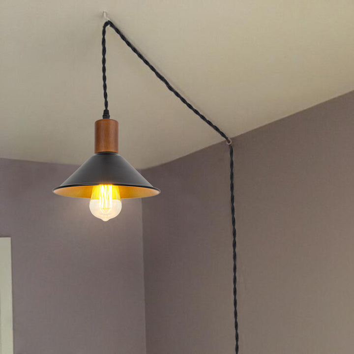 FSLiving 木製 ペンダントライト コンセント式 北欧 間接照明 天井照明 LED対応 e26 調光器付き 賃貸対応 木目なソケット ウッドペンダントライト 勾配天井ペンダントライト TB2866 DZ22*8CM-GL