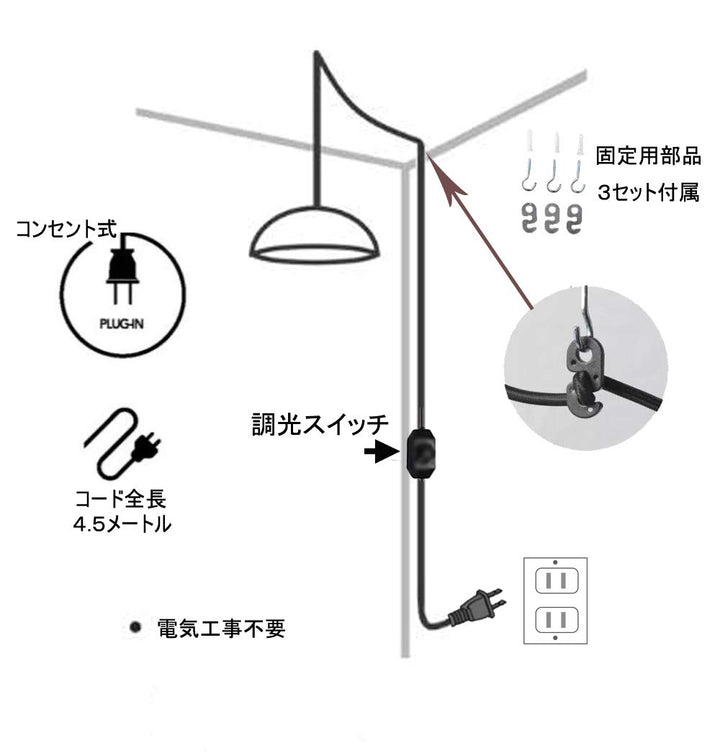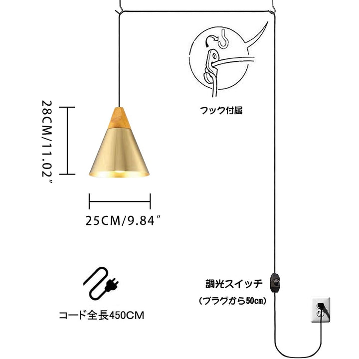 FSLiving ペンダントライト コンセント式 吊り下げライト コンセント用 調光スイッチ付き 調光対応 インテリアライト 照明器具 玄関照明 玄関ライト 賃貸照明 工事不要 TB0832GLGTS-4.5M-47