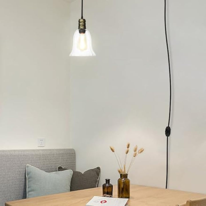 - This pendant light is a power outlet type. It has an intermediate switch, you can adjust the length at any time, no construction is required, very convenient. Atmosphere: It matches antique Edison bulbs and retro-designed LED bulbs, creating a classical atmosphere.