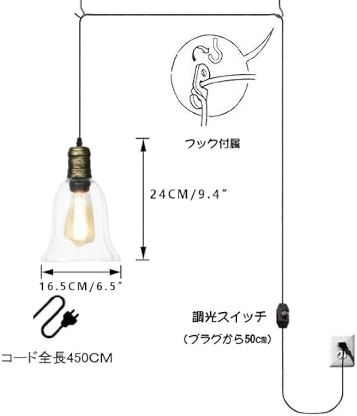 - Installation method: Outlet type Cord: 450cm With dimmer switch Base: E26 (bulb not included) Note: Please use with a dimmable filament bulb!