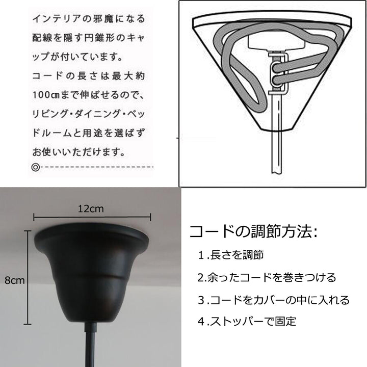 - Installation method: Suitable for ceiling lights and hanging ceilings. Cord length: Comes with a storage cup, length can be freely adjusted within a range of 100 cm. Base: E26 (bulb sold separately)