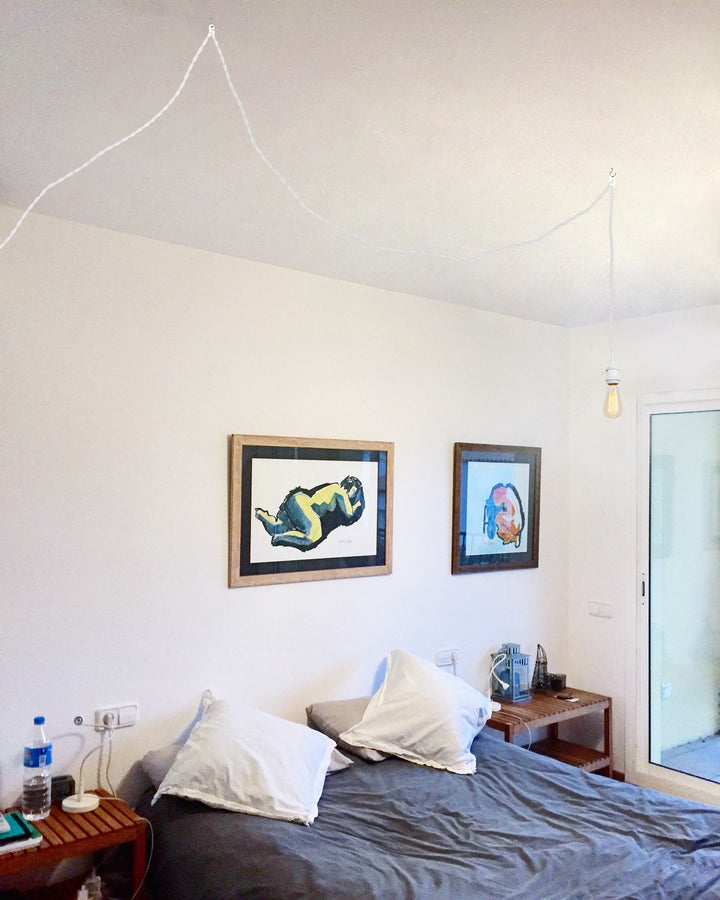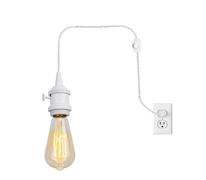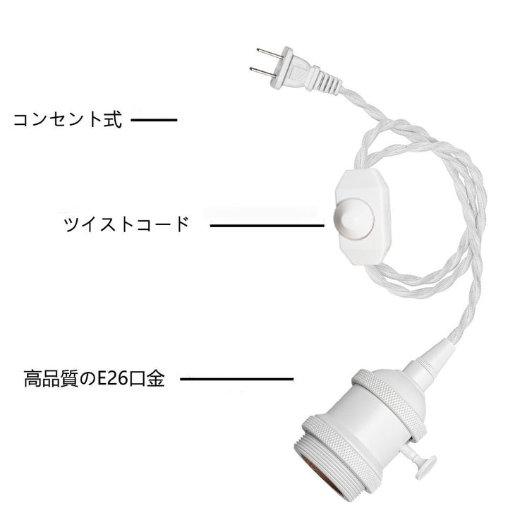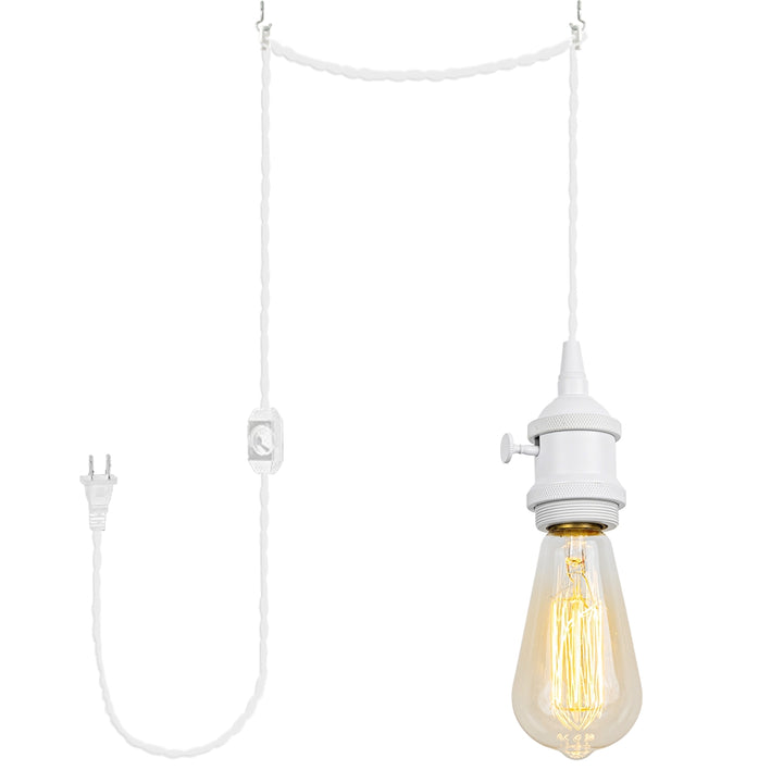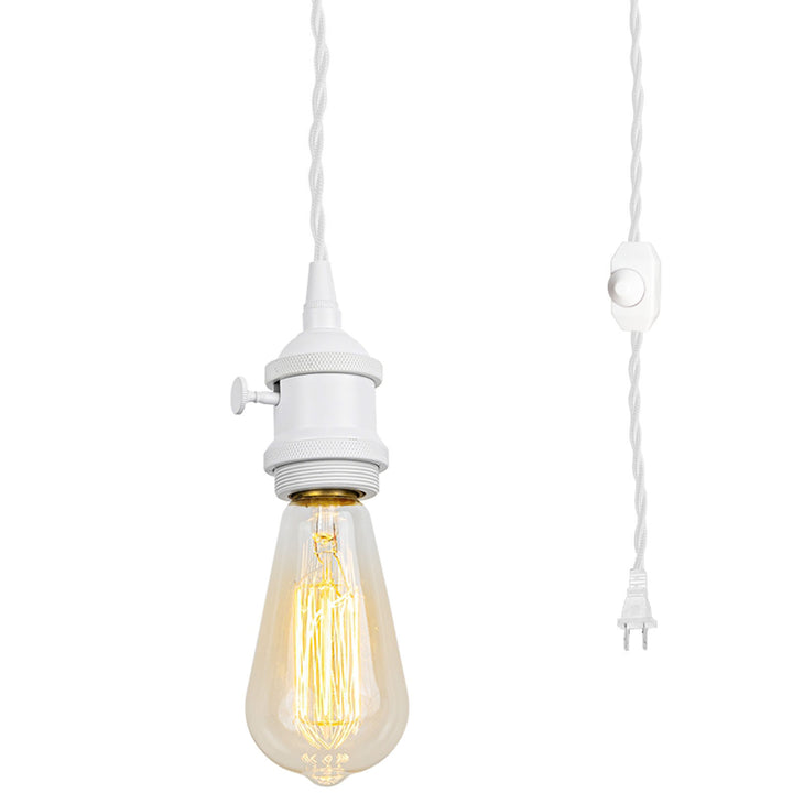 FSLIVING Retro 1-Light Pendant Light, Outlet Type (1.8m/4.5m/6m), Adjustable Hanging Height, Dimmer Switch Included, Compatible with Dimmable Bulbs, Interior Lighting, Cafe, White