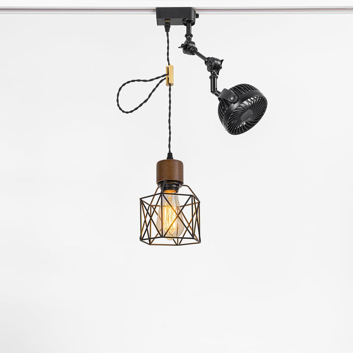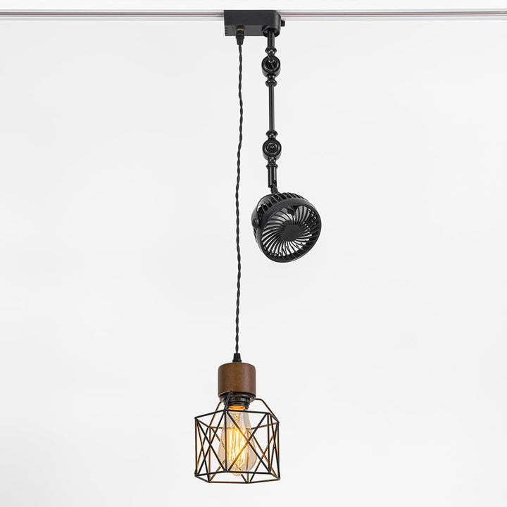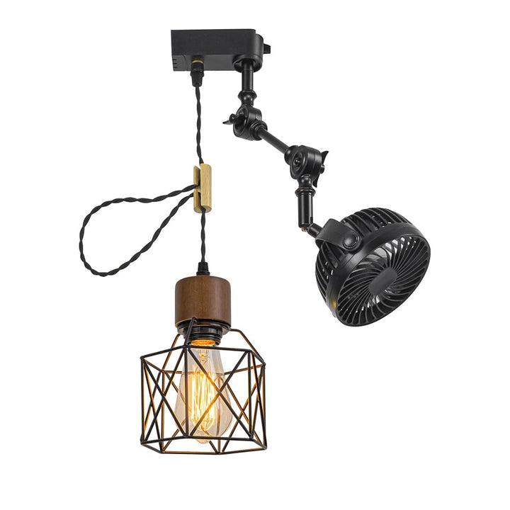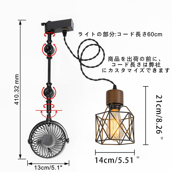 FSLiving レールライト&ファン一体型 省スペース アーム付き送風機 角度調節可 コード長カスタマイズ可能 レトロエジソン電球 植物育成 空気循環 間接照明 ダクトレールライト SET-A001-TBFS-2865HTM-DZ13LKB