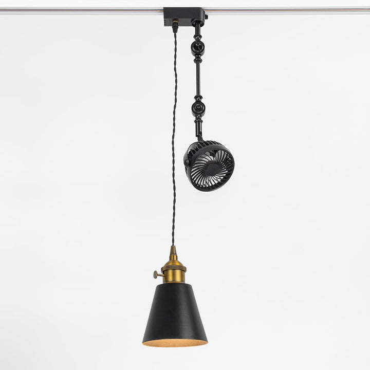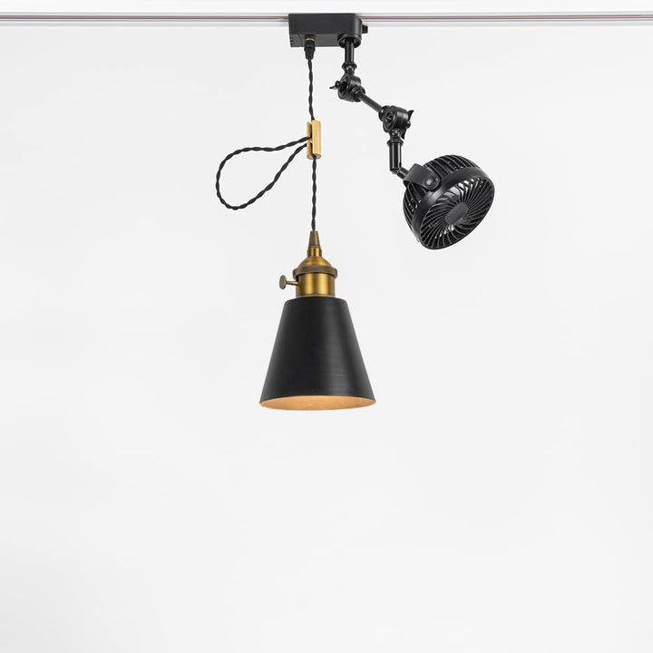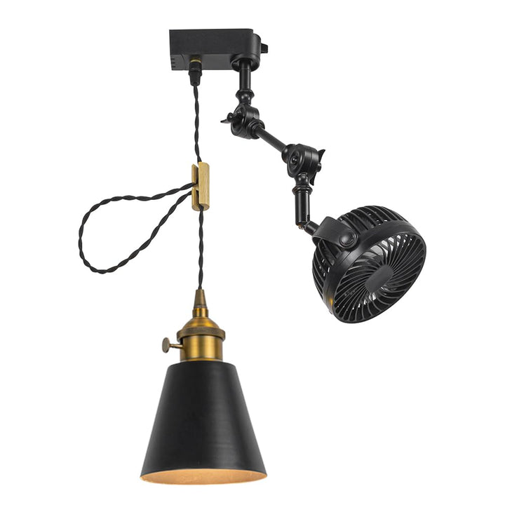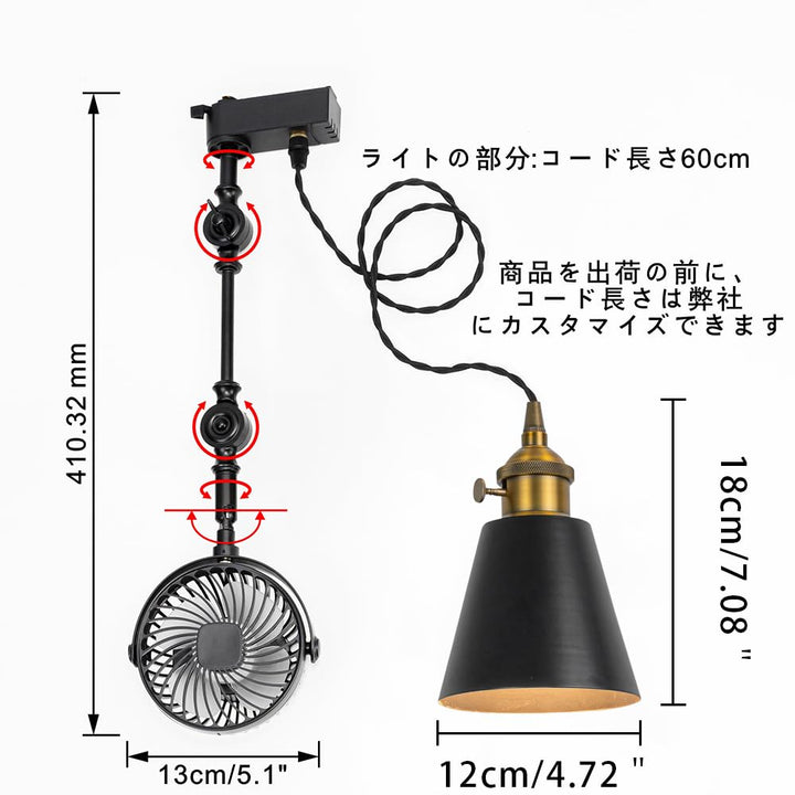 FSLiving レールライト&ファン一体型 省スペース アーム付き送風機 角度調節可 コード長カスタマイズ可能 レトロエジソン電球 植物育成 空気循環 間接照明 ダクトレールライト SET-A001-TBFS-DKGDT-DZ12X10B