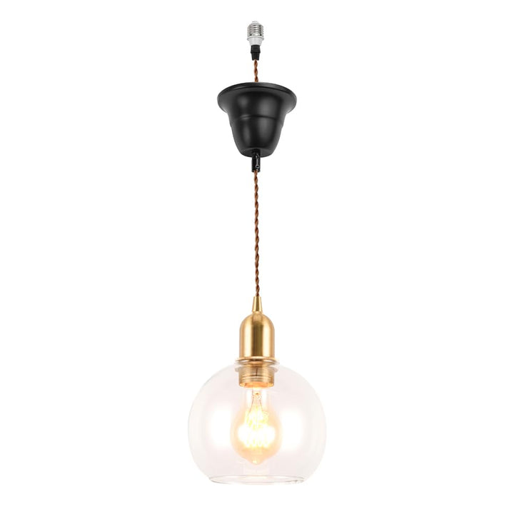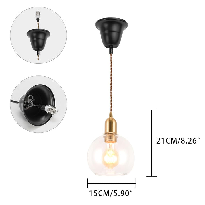 FSLiving 丸 E26プラグ ダウンライト対応 斜め天井対応 賃貸対応 ダウンライト用ペンダントライト レトロ 雰囲気変え 賃貸照明 真鍮ソケット クリアガラスシェードSJW15