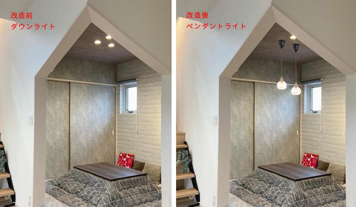• 賃貸に一番適用します。本体の構造を変更無しで、ダウンライトをペンダントライトに交換できます!雰囲気を変えよう!