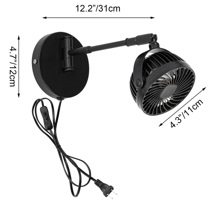 FSLIVING 壁掛け式送風機 コンセント式 コードon・offスイッチ付き ブラック 角度調節可 観葉植物 ペット用可 取付簡単 換気 空気循環 オフィス用 リビングルーム用 キッチン