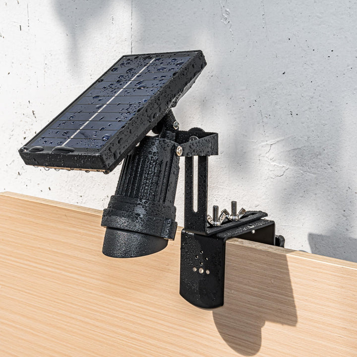 • 設置の自由度が非常に高い。ライトをしっかり支えるクリップがついているので、看板や板などを挟んで使えます。新しい家と古い家に関わらず、ガーデンや玄関などお好きな場所に女性一人でも素早く簡単に設置できます。