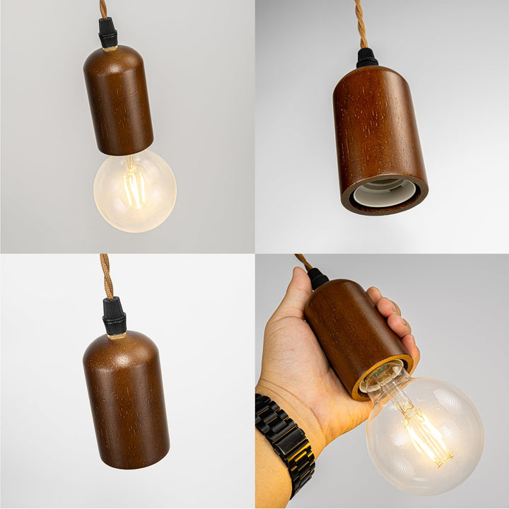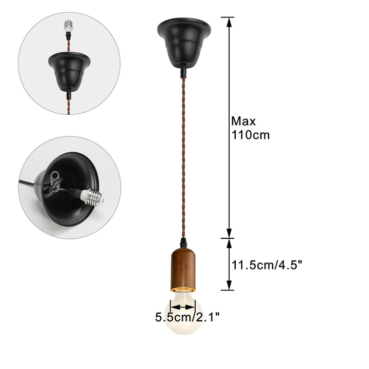 FSLiving 木製ソケット ペンダントランプ 吊り下げ1灯式ライト 和風 E26 コンセント式 ウッド 木 E26プラグ ダウンライト対応 賃貸対応 ダウンライト用ペンダントライト ダウンライトをペンダントライトに変更 レトロ