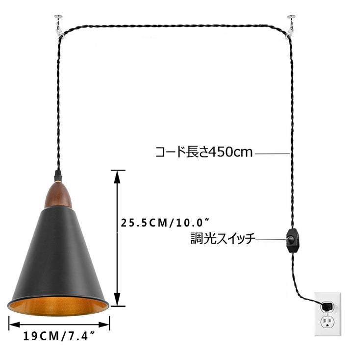 Installation: Plug-in type Cord length: 450cm, with dimmer switch on cord Socket: E26 (bulb sold separately), supports up to 100W. Please use with a dimmable filament bulb.