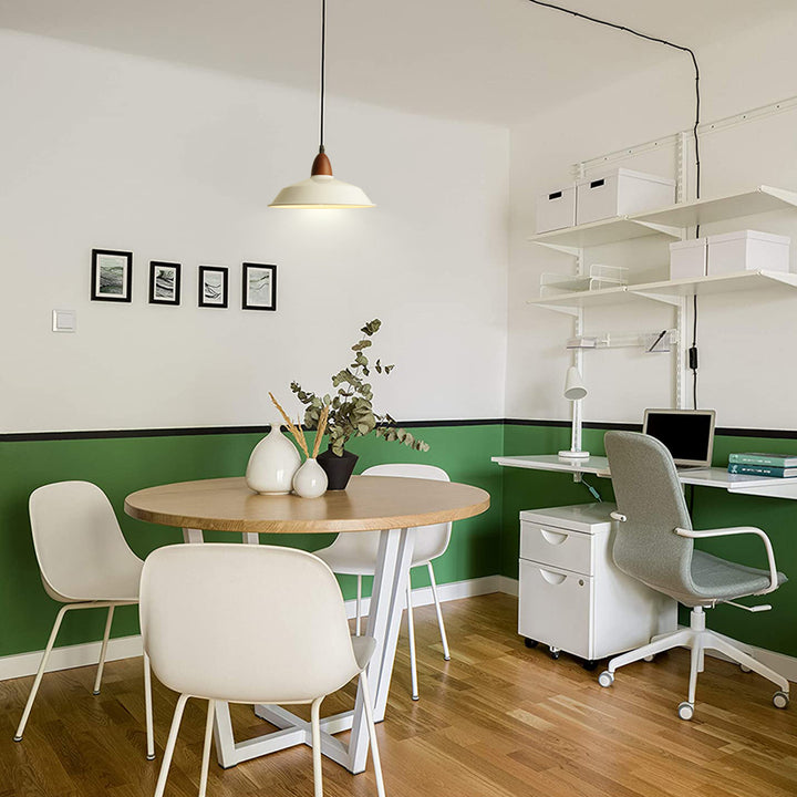 The secret to the soft and relaxing design is the collaboration between the wood grain and steel materials. By combining these different materials with the lighting style, it creates a stylish and modern atmosphere. The soft light spilling from the shade creates a gentle mood.