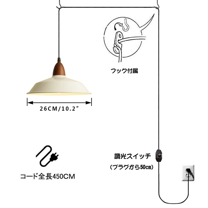 Installation: Plug-in type Cord length: 450cm, with dimmer switch on cord Base: E26 (bulb sold separately), supports up to 100W. Please use with a dimmable filament bulb.