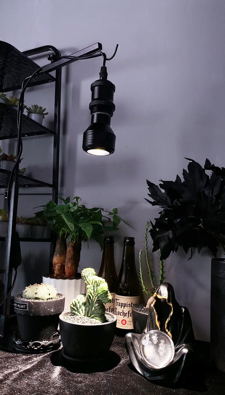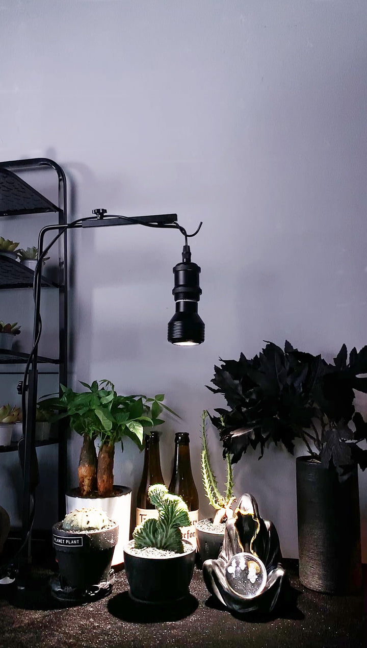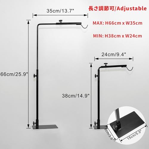 - 「角度調節可」:縦アームの長さは38cm-66cm範囲内に、横アームは24cm-35cmに調節することができます。光が欲しいところに簡易に照らせて植物の育成によいです。