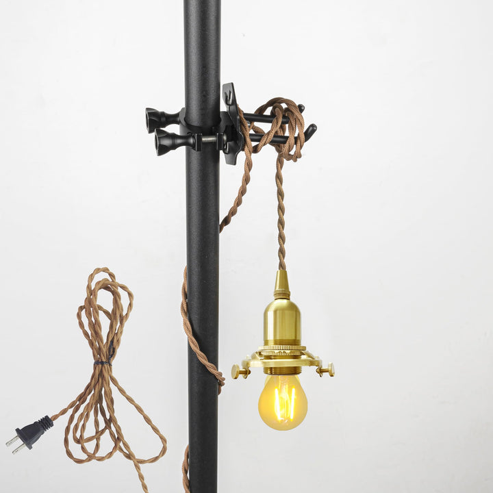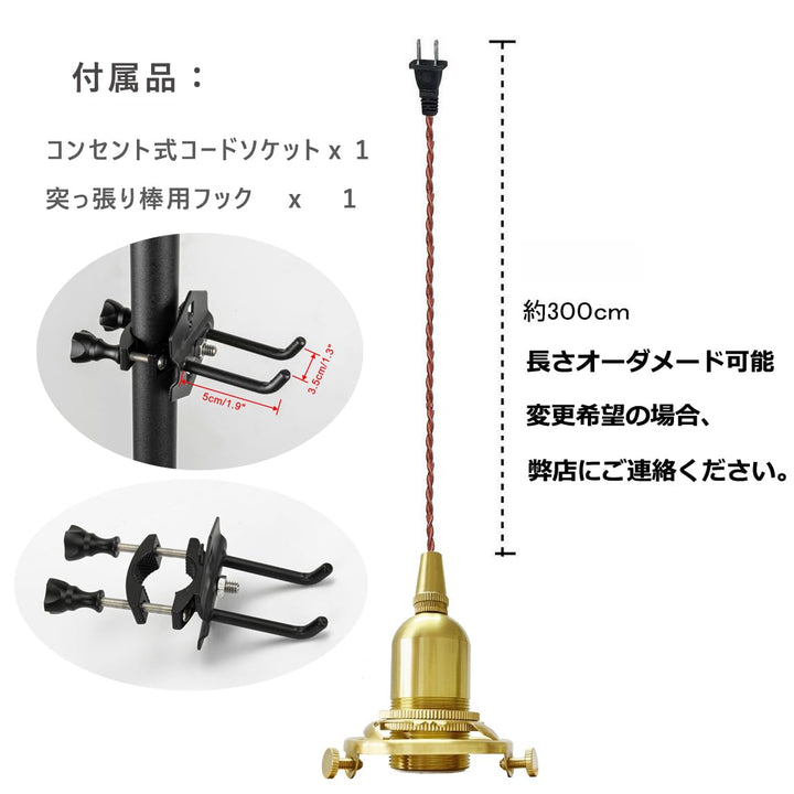 FSLiving 突っ張り棒対応 コンセント式ペンダントライト インテリア照明 カフェ 新生活 賃貸照明 玄関ライト 収納 3点留めリング 最大で口径6cm対応 E17 真鍮ソケット