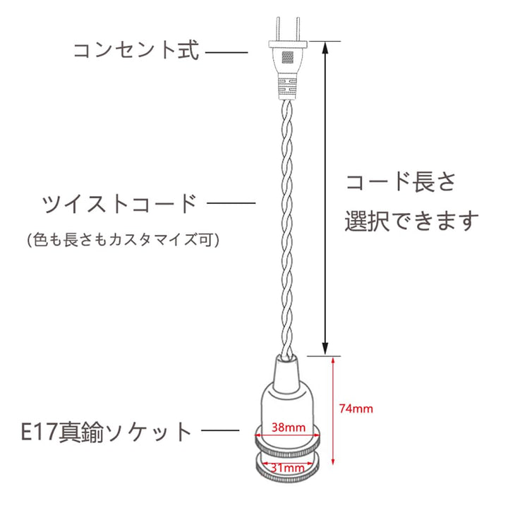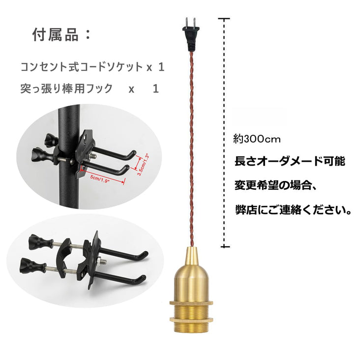 FSLiving 突っ張り棒対応 コンセント式ペンダントライト インテリア照明 カフェ 新生活 賃貸照明 玄関ライト 収納 E17 真鍮ソケット