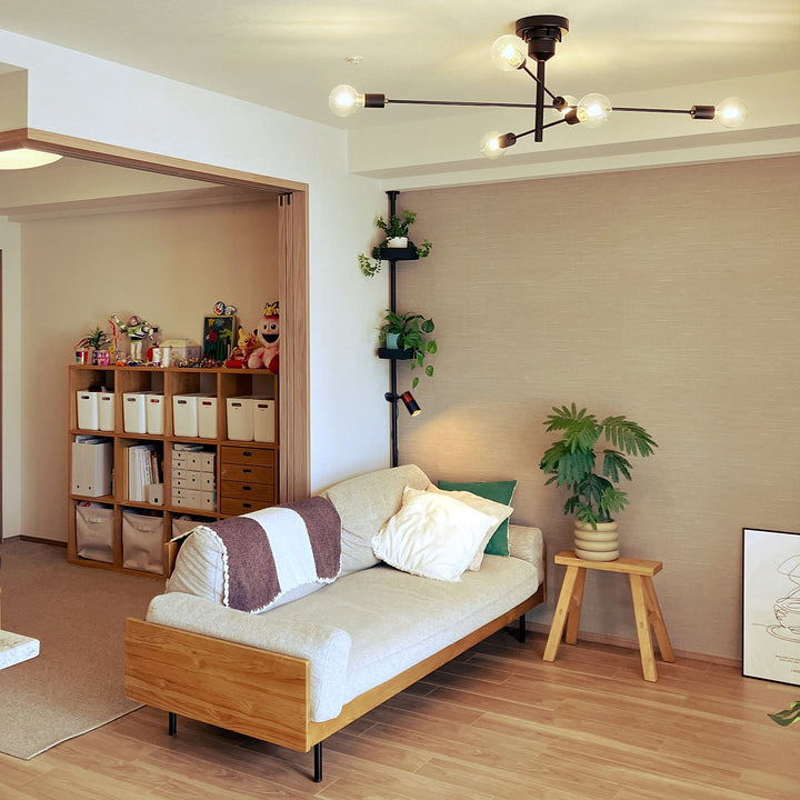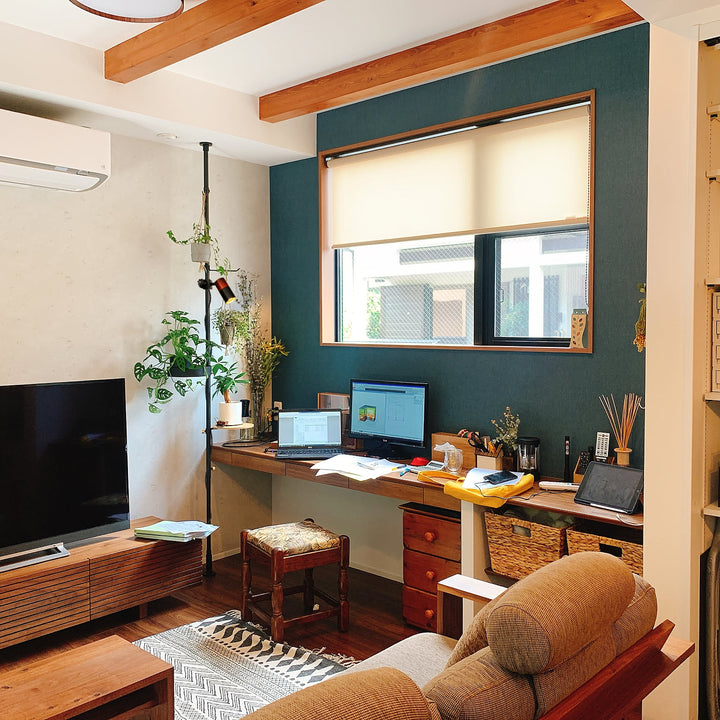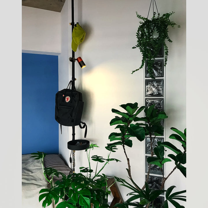 • 高さと場所を自由に変更することができ、必要な場所に光を落とすことができます。また、足元がすっきりしているので空間を圧迫せず、備え付けの照明のように設置することができます。テンションロッドから大きく張り出す美しい見た目が特徴です。