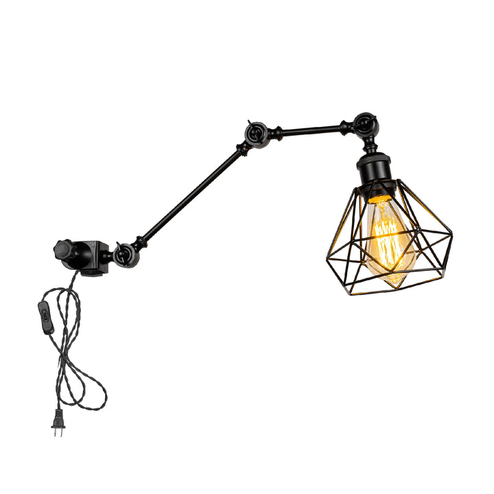 FSLiving 縦アクセサリー対応 ブラケットライト 突っ張り棒対応 アーム式 調節可能 ランプアーム 棒などの縦アクセサリーに固定可能 クリップライト E26 マットブラック レトロ 新生活 賃貸照明 賃貸対応照明器具 BD3086zs