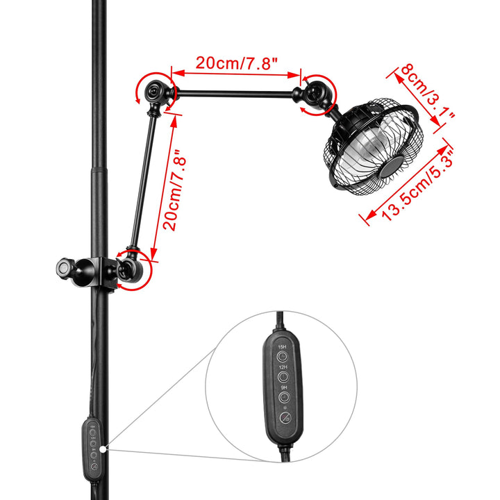 - 角度調節可 【取り付け方法】クリップ式 コード長さ約100cm 通電方式:コンセント式 タイマー機能付き(9H/12H/15H)