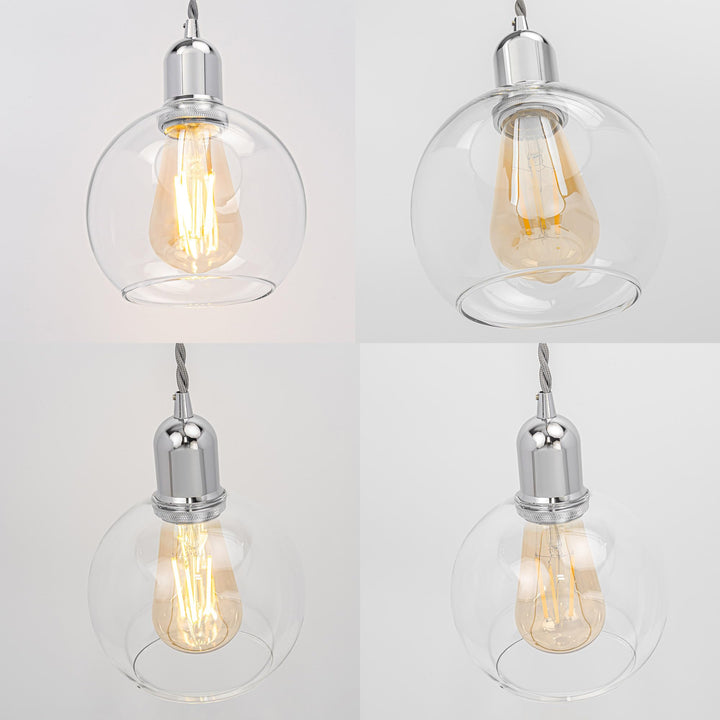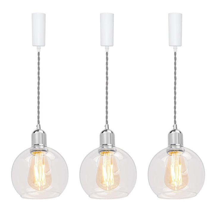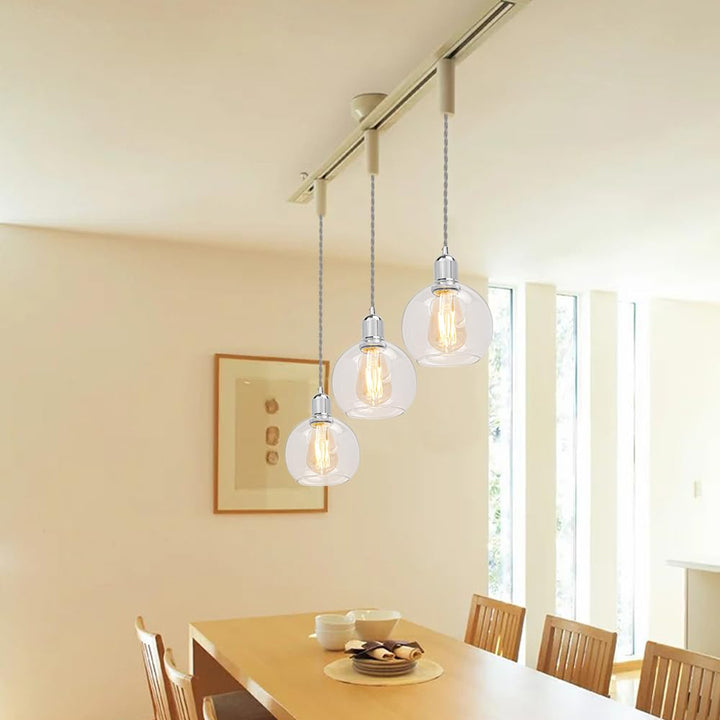 FSLiving 3個入り ペンダントライト ライティングレールライト ダクトレール式 コード長さ調節可 ペンダントランプ 玄関照明 客室用 ガラスシェード 透明 E26口金 電球別売り シルバーソケット