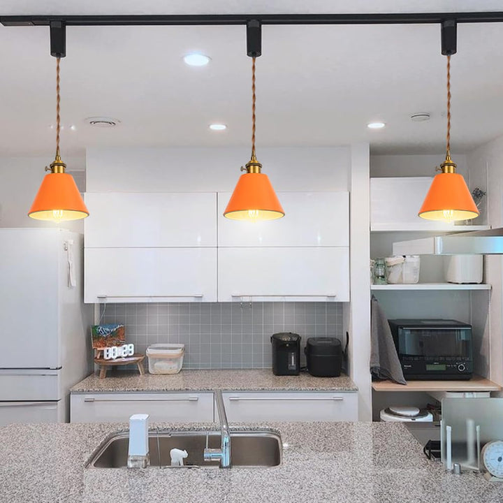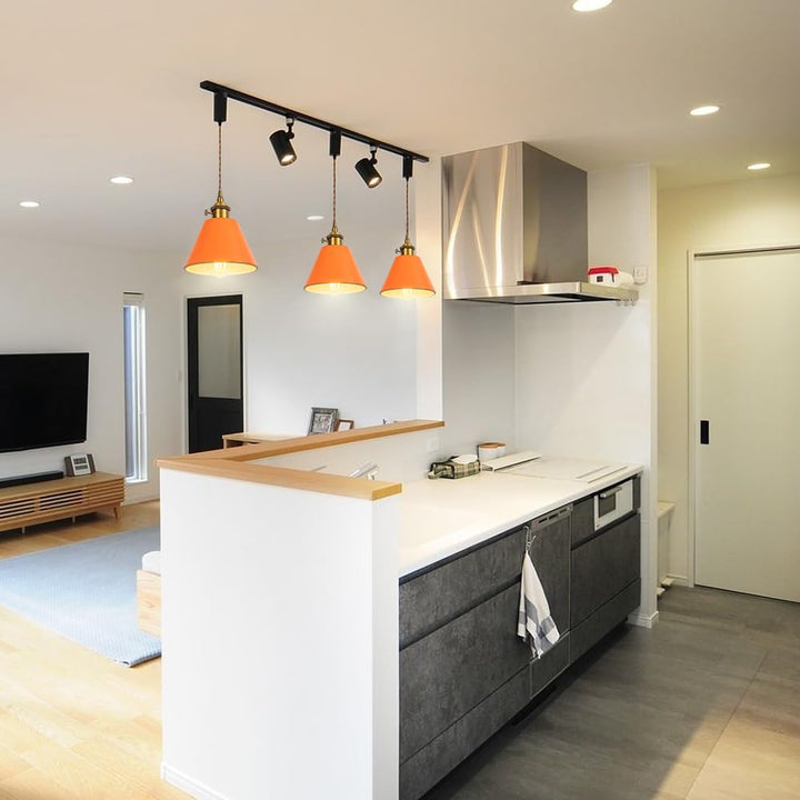 FSLiving ペンダントライト コード長さ100cm ダクトレール式 調光対応 収納コップ付き 100cm範囲内に調節可 E26対応 電球付属しない インテリアライト 吊り下げライト 玄関照明 客室用 ゴールドソケット 回転スイッチ付き オレンジ色シェード シェード直径17cm