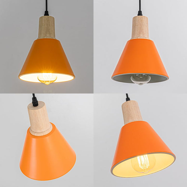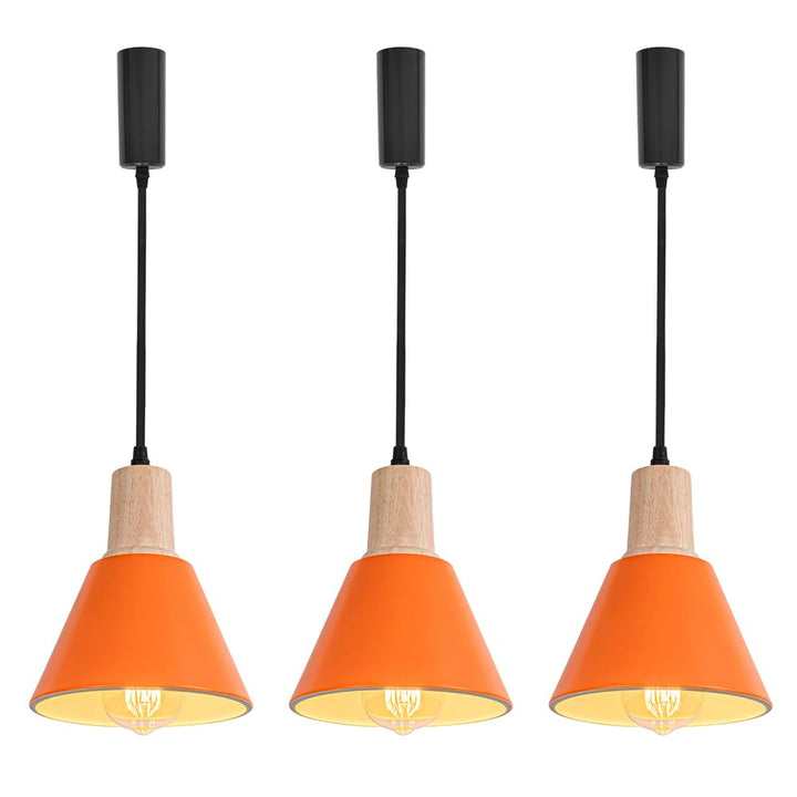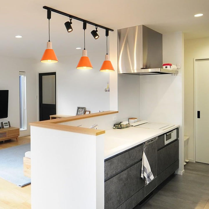 FSLiving 3個セット ペンダントライト コード長さ100cm ダクトレール式 調光対応 収納コップ付き 100cm範囲内に調節可 E26対応 電球付属しない インテリアライト 吊り下げライト 玄関照明 客室用 長い原木色ソケット オレンジ色シェード シェード直径17cm
