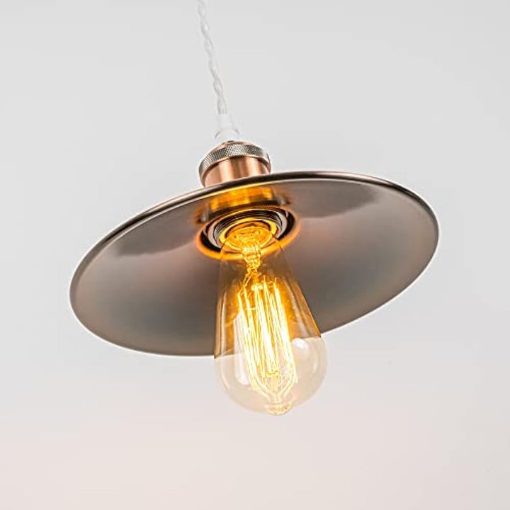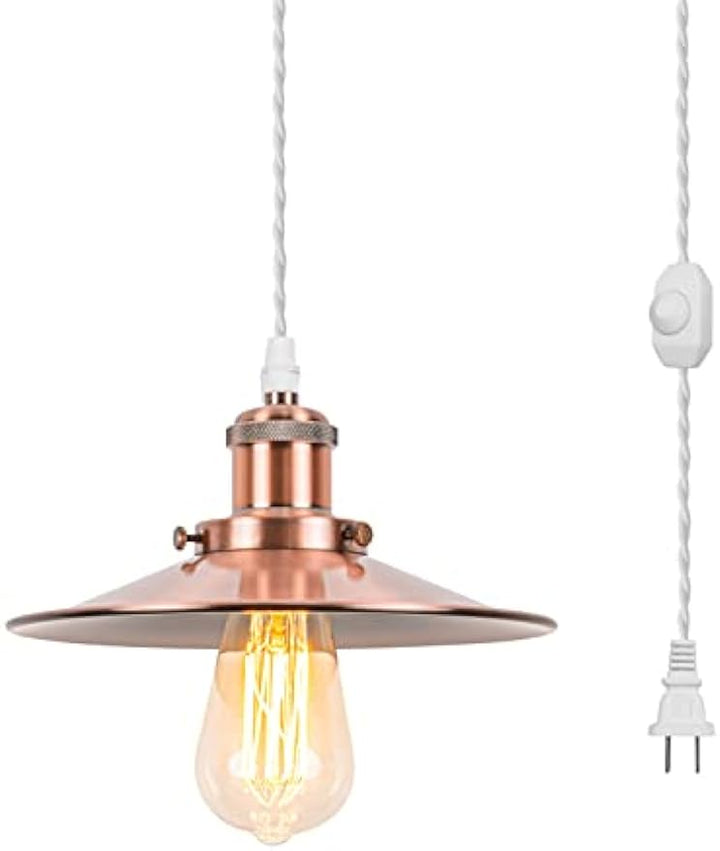 fsliving コンセント式 ペンダントライト 1灯 工事不要 調光対応 長さ調節可能 E26口金 インテリア照明 吊下げ灯 4.5M 白いコード付 鉄製 北欧 照明ガード 円板 鍛鉄 産業風 赤古銅 笠 バー レトロ 和風 照明器具 和室 天井 led対応 ON/OFFスイッチ付き 赤銅ソケット ブロンズ 笠つき シェード 廊下 玄関 アイランド キッチン店舗 新築リフォーム カフェ カスタマイズ可能,2773TB-4.5M