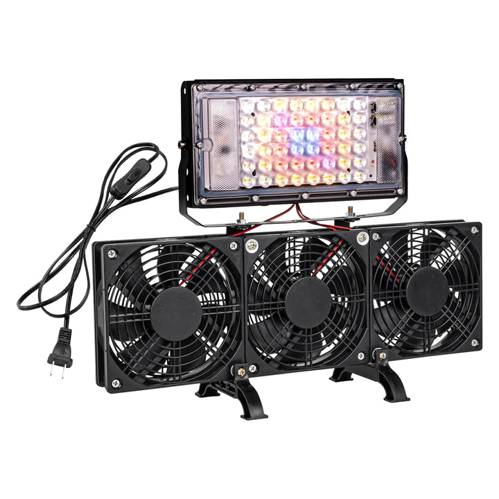 • 締め切った部屋は空気が循環せず風通しが悪くなるので、根腐れなどを起こす可能性があります。この送風機は風通しを良くし、ライトを合わせて使用して、植物が傷つかれやすくなることを防止することができます。