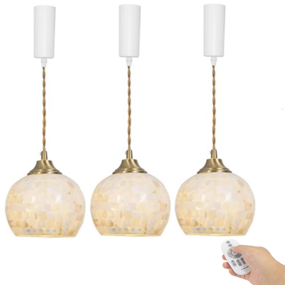 3個パック 貝がら ティファニーライト 丸形 ペンダント 和風 ダクトレールライト ペンダントライト 貝がら吊下げ灯 配線ダクトレール レール用ペンダントライト、 LED対応 調光対応 ダクトレール照明 銅製 E26口金、 ブラックソケット モダン 飾り 長さ調節可能 間接照明、100cmコード リビングルーム 廊下 玄関 アイランド キッチン 茶室 新築リフォーム カフェ 工事不要 電球付属 リモコン付き