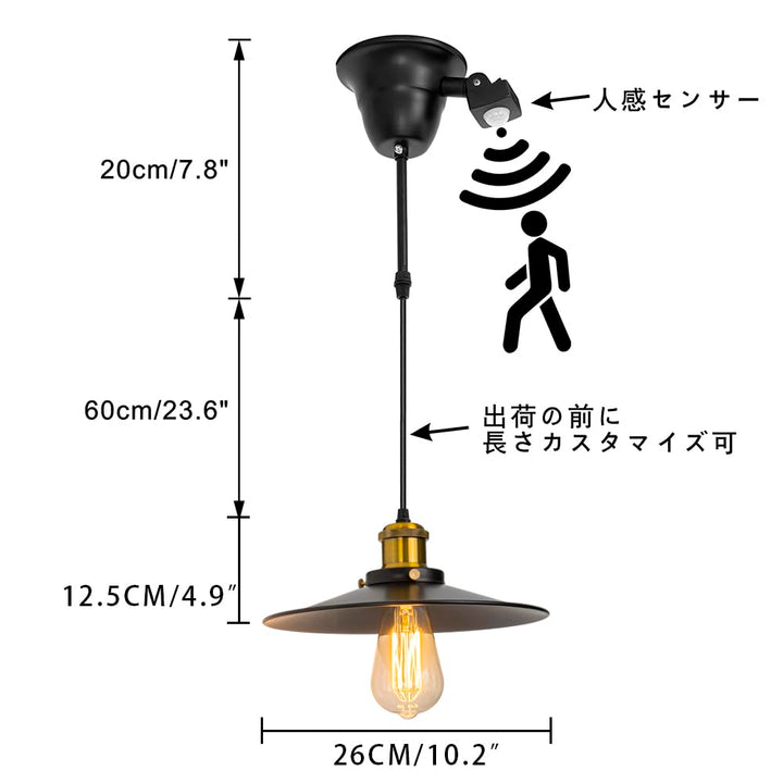 引っ掛けシーリング式 FSLiving ペンダントライト センサー機能 人感センター シーリングライト 取り付け便利 点灯時間調整 トイレ照明 玄関照明 E26口金 センサーペンダントライト 省エネルギー 自動的点灯消灯 A1-TBGYYG-JGT-DF26CM