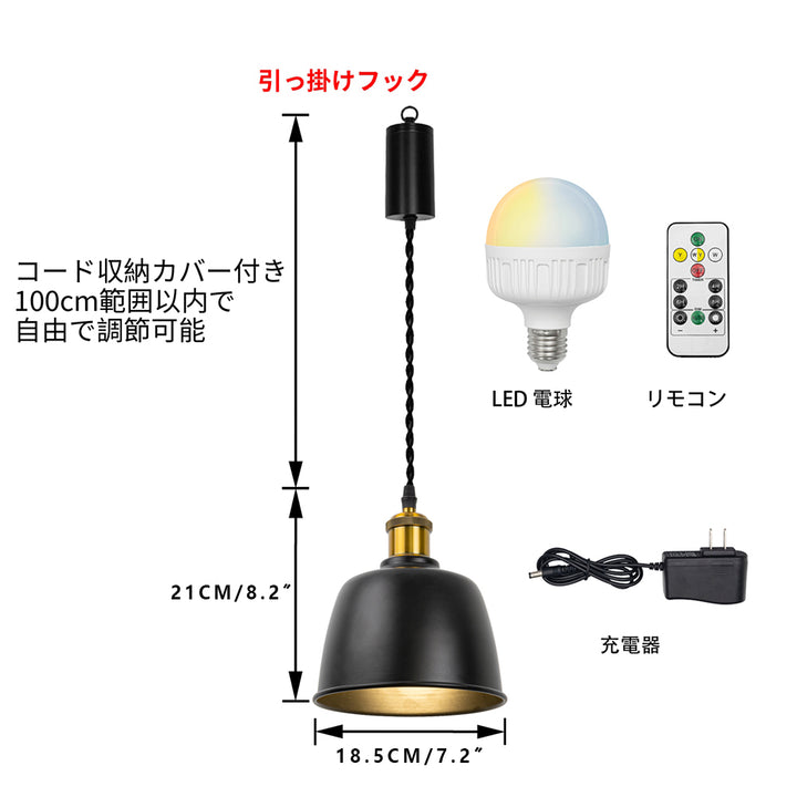 ・ノンワイヤーペンダントライト- リチウムバッテリー内蔵電源、ワイヤをインストールする必要はありません。充電ケーブル付属。
