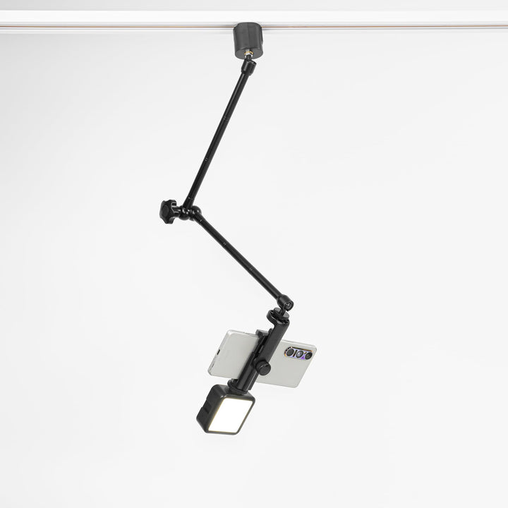 - 当商品はダクトレール式のフレキシブルマジックアームなホールダーのみです。画像にあるカメラ、ライトやプロジェクターなどは付属しません。