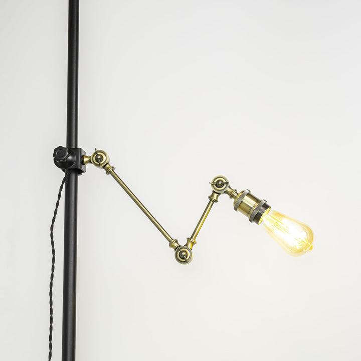 - 高さと場所を自由に変更することができ、必要な場所に光を落とすことができます。また、足元がすっきりしているので空間を圧迫せず、備え付けの照明のように設置することができます。しかも天井から吊るす照明とは違って壁のコンセントから電源を取ることができるため設置場所を問いません。