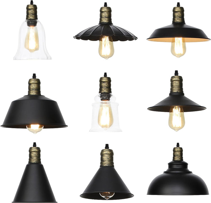 FSLiving ペンダントライト コードながさ100cm 収納カバー付き 100cm範囲内に調節可 E26対応 引っ掛け式 玄関照明 インテリアライト 吊り下げライト 長いブロンズソケット シェード直径16.5cm 電球別売り
