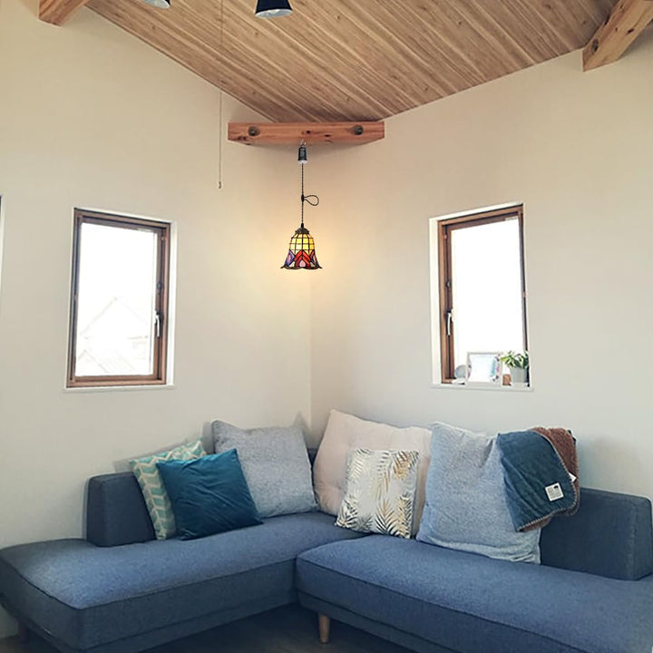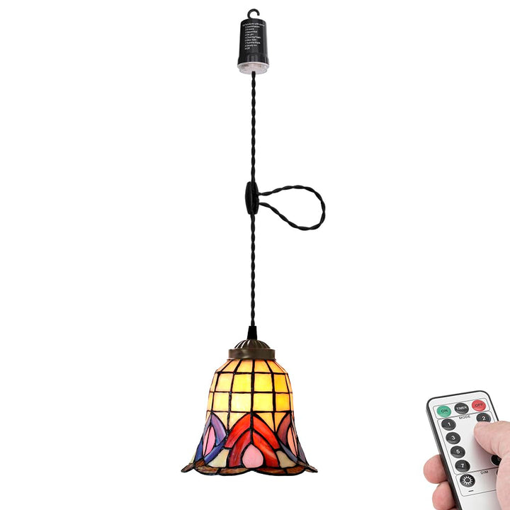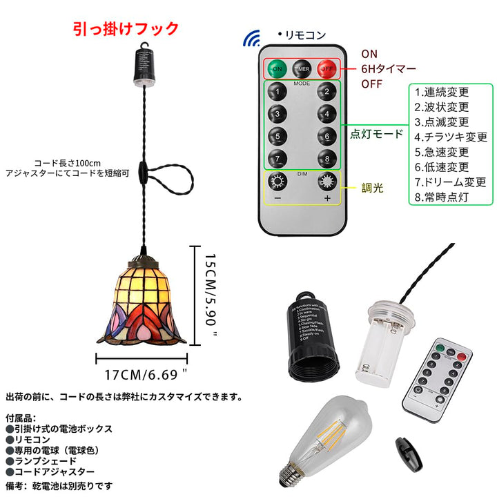 FSLIVING ペンダントライト 引掛けフック式 ティファニー ティファニーランプ チェーン付属 電池式 電池ボックス 吊り下げライト 雰囲気 リモコン付き 調光可 タイマー機能付き 8つの点灯モード選択可 賃貸照明 TB3144DCB-T1829