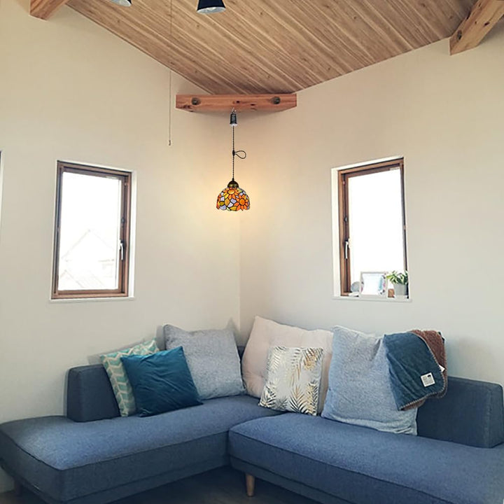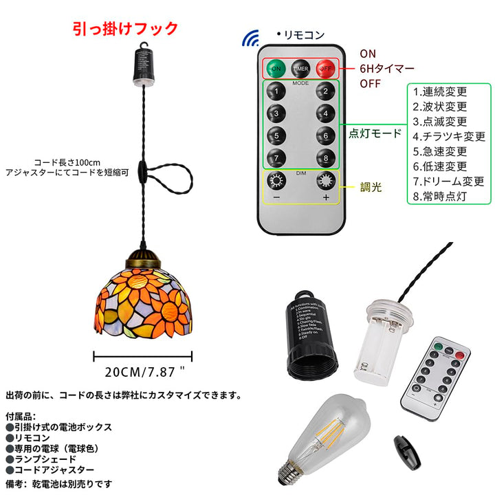 FSLIVING ペンダントライト 引掛けフック式 ティファニー ティファニーランプ チェーン付属 電池式 電池ボックス 吊り下げライト 雰囲気 リモコン付き 調光可 タイマー機能付き 8つの点灯モード選択可 賃貸照明 TB3144DCB-X262