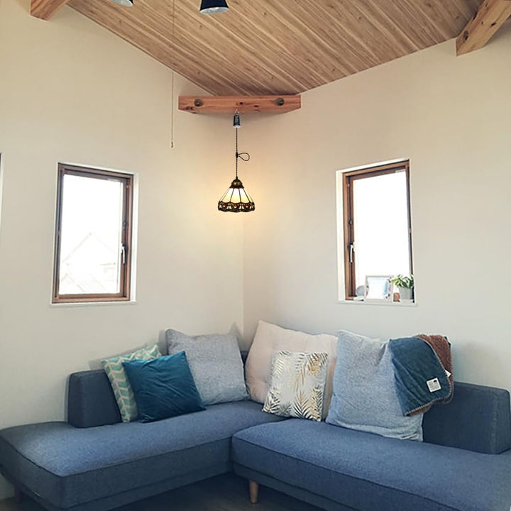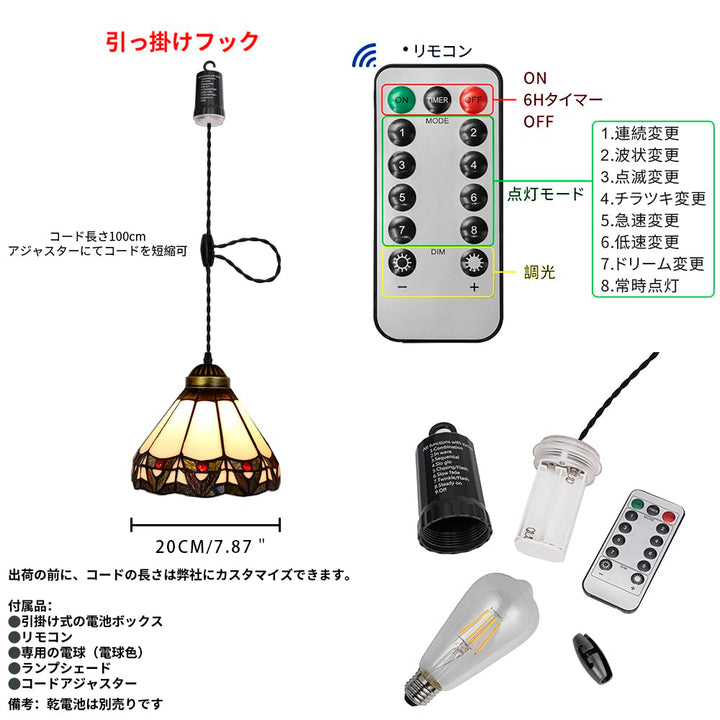 FSLIVING ペンダントライト 引掛けフック式 ティファニー ティファニーランプ チェーン付属 電池式 電池ボックス 吊り下げライト 雰囲気 リモコン付き 調光可 タイマー機能付き 8つの点灯モード選択可 賃貸照明 TB3144DCB-X266