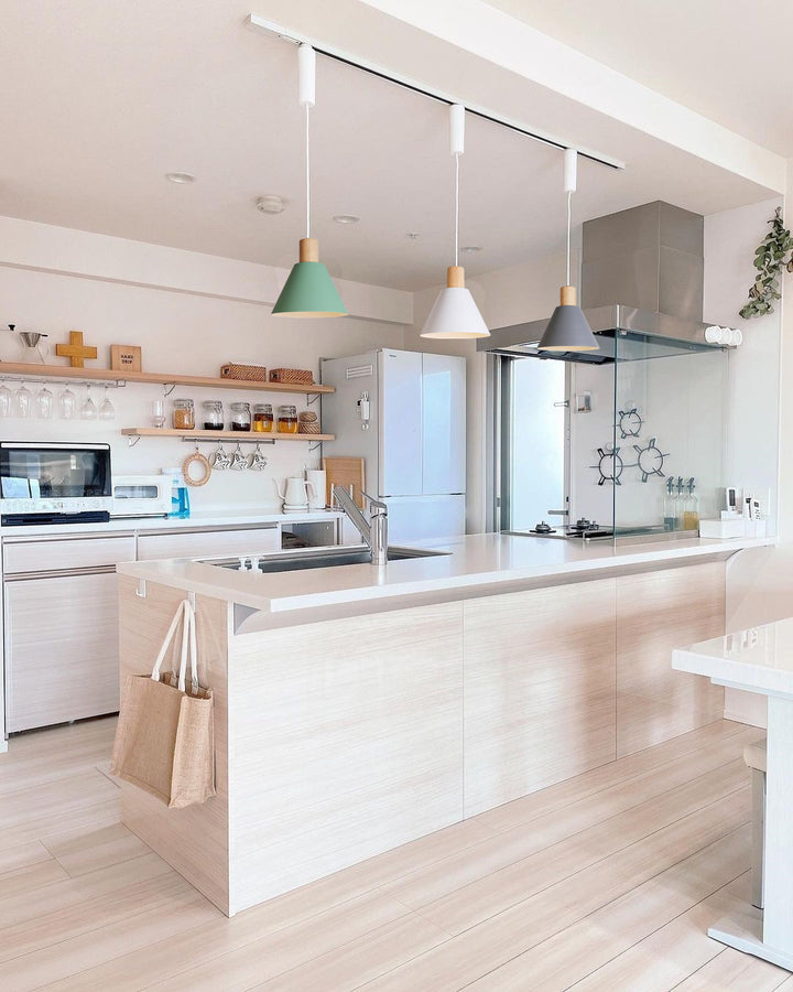 • このサイズだと様々な場所や様々な空間で使えるので、とっても使いやすいのが良いんです。サニタリーに1灯吊るすのも可愛いですね。いつもと同じ場所でも料理を美味しそうに映したり、リラックスした雰囲気を演出します。
