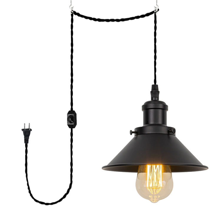 FSLiving マットブラック ペンダントライト コンセント式 ペンダントランプ 玄関 キッチン 店舗 照明器具 照明ライト 新生活 調光対応 E26 リフォーム 照明 男前