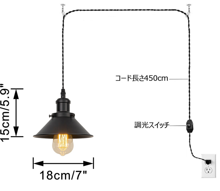 - 取付方法:コンセント式 コード:450cm 口金:E26(電球別売り)