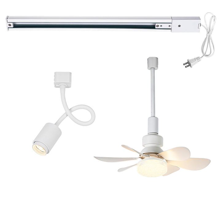 FSLiving ライティングレール用セット品 スポットライト 空気循環 洗面所 オフィス用 リビングルーム用 静音 扇風機 ホワイト本体 賃貸対応 ZH09-1D-1FS-1GDT