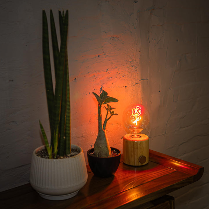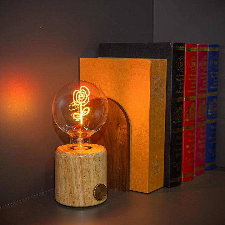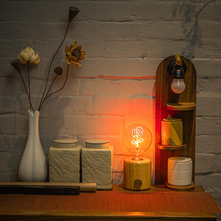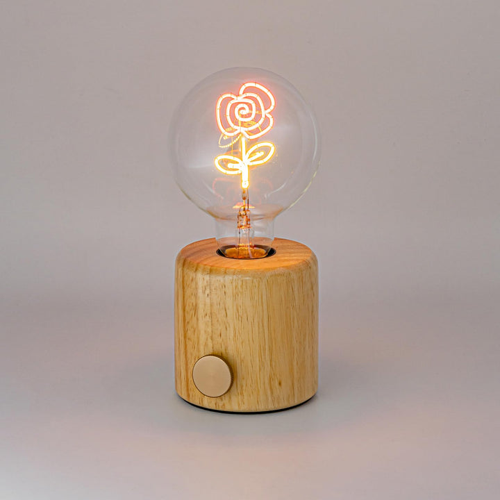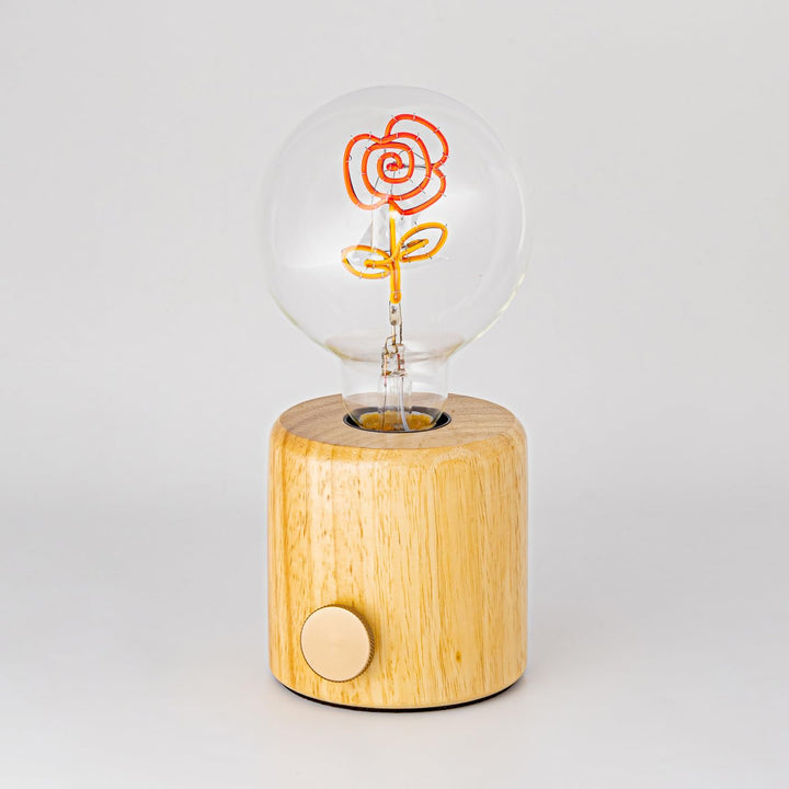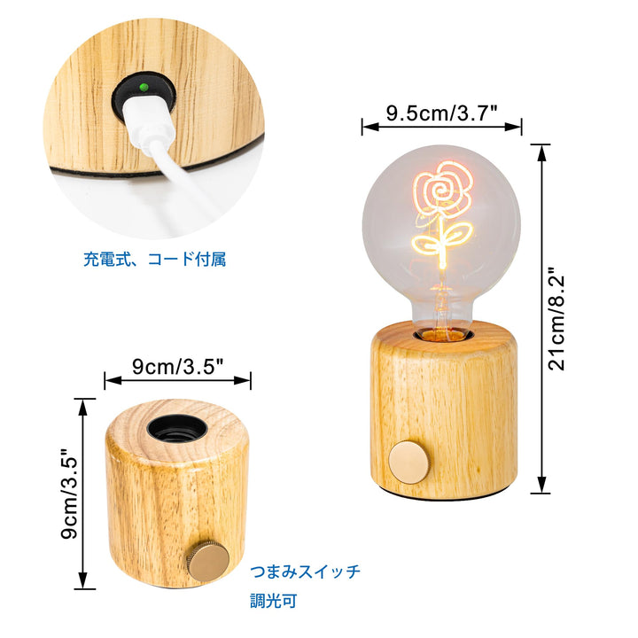 FSLiving 花の優しい灯り 充電式 LEDライト 木製モードライト 省エネ 装飾ランプ お花デザイン電球付き テーブルランプ 調光 タイプC