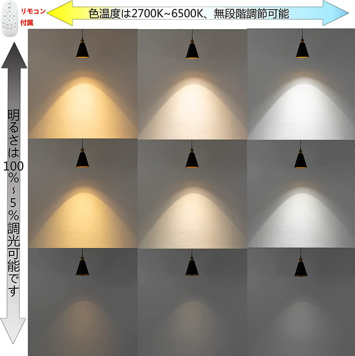 - 【調色&調光LED電球付属&便利なリモコン操作】ライトの発光色と明るさ調整は細かく設定可能で非常に便利。 離れたところからでもリモコンで簡単にON/OFF、調光・調色などの操作が可能です。照射角度も15°、40°、60°調節可能です。