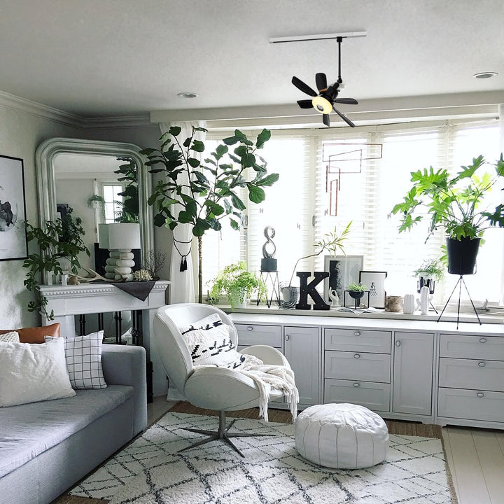- 空気を循環できるダクトレールファン。オシャレでありながらも主張しすぎず、シンプルなデザインがインテリアを選びません。