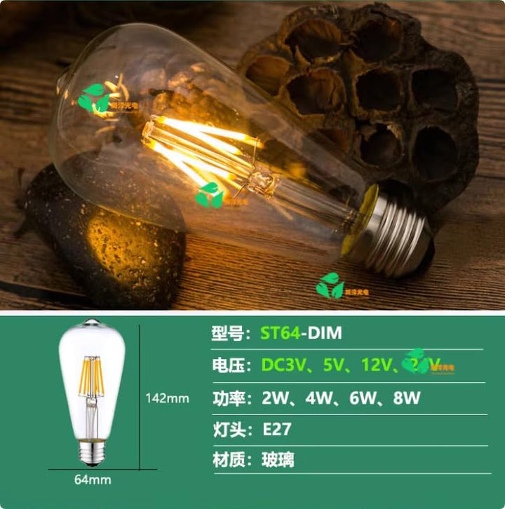 FSLiving 2個入 DC 5ボルト 2700k 4W LED フィラメント ST64 電球 E26 ミディアムベース ランプ 低いボルテージ ボート ソーラー レトロ エジソン 5V 調光対応