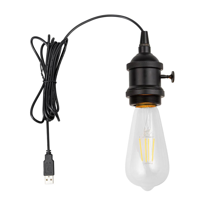 FSliving 5V対応 回転スイッチ ポータブル USB 5V電球対応ソケット キャンプライト アウトドア テント ランタン デスクライト ベッド 寝室 ランプ 車中泊 停電 緊急 E26 電球付属 2700K 1mコード付き マットブラック