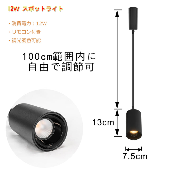 fsliving ダクトレール用 ペンダントライト リモコン 円筒型 スポットライトバー ライティングレール インテリア照明 寝室 レール ライティン グレール 食卓用 施設照明 配線ダクトレール用 コード収納でき 調節可能 ダクトレール照明 COB 調光&調色 展示ライト