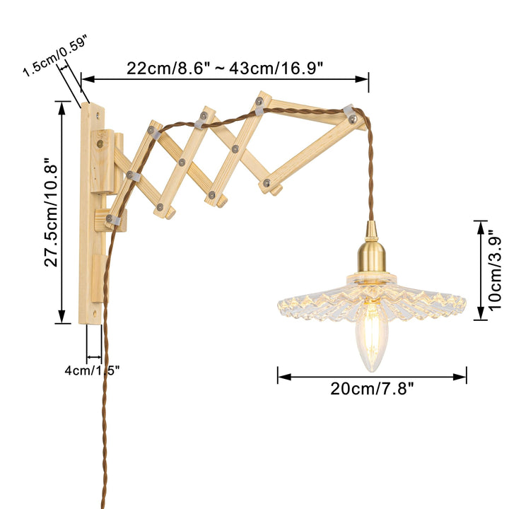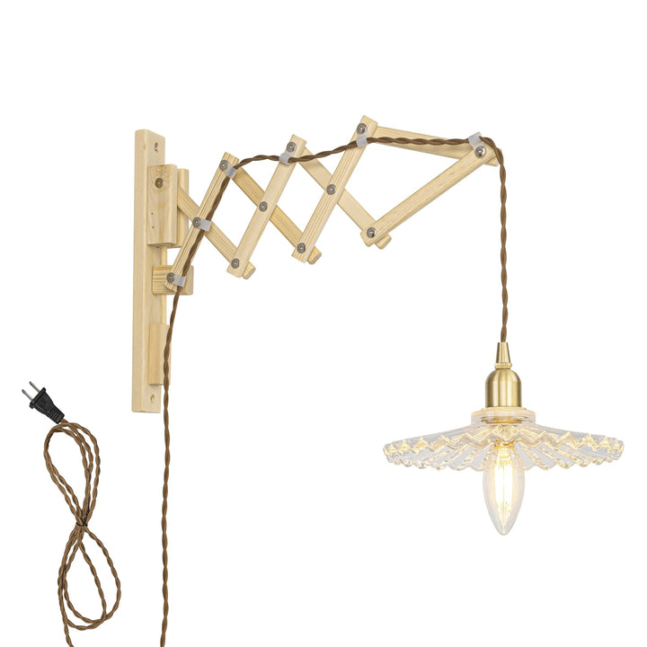 FSLiving E17真鍮ソケット 前後可動 ブラケットライト コンセント式 壁掛け照明 照明器具 電球別売り 木製ブラケット ガラスシェード